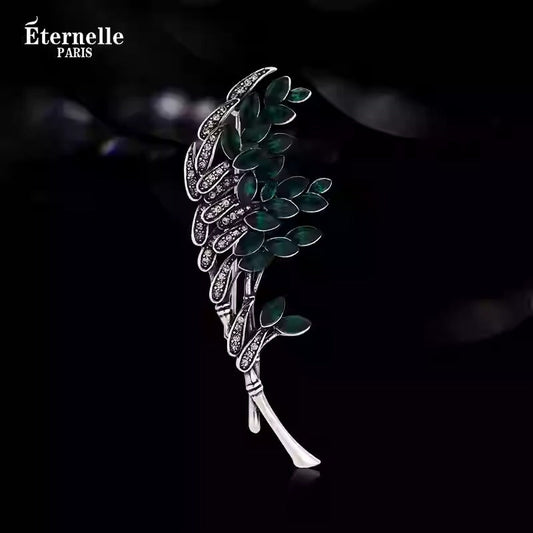 Broche Feuille Élégante en Cristal Vert - Éternelle Paris