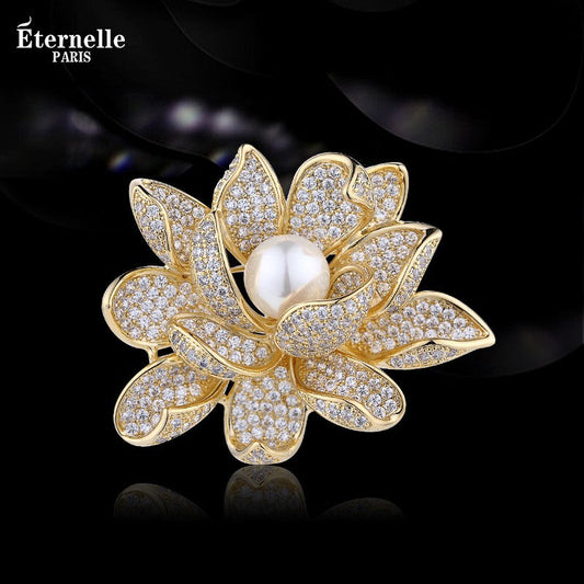 Broche Fleur Dorée Avec Perle - Éternelle Paris