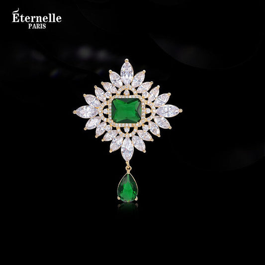 Broche Royale Avec Cristal Vert Émeraude - Éternelle Paris